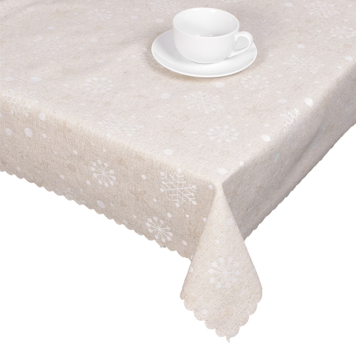 Ubrus gobelinový vánoční, Malé vločky a bílé tečky, béžový 78 x 78 cm