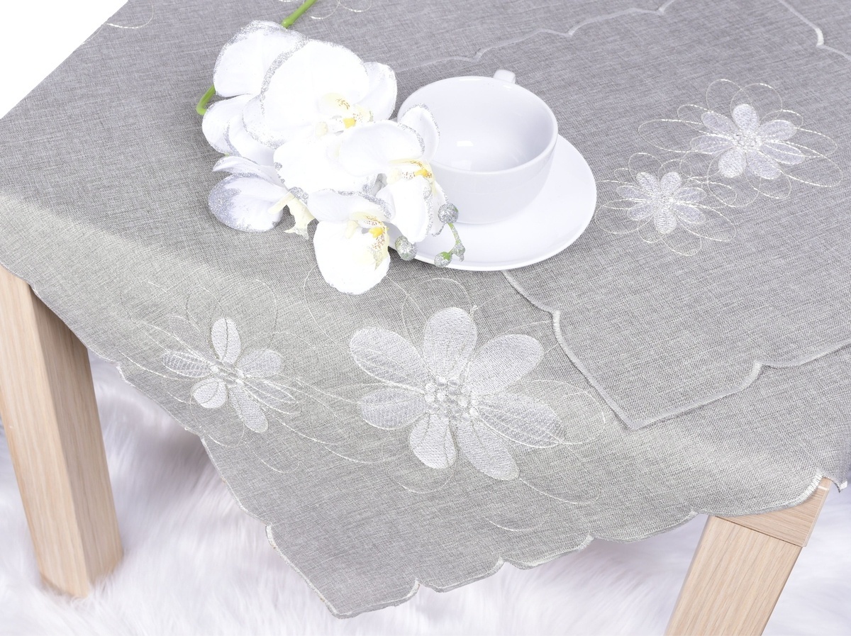 Ubrus celoroční, Šedo stříbrné květy vyšívané, šedý 35 x 35 cm