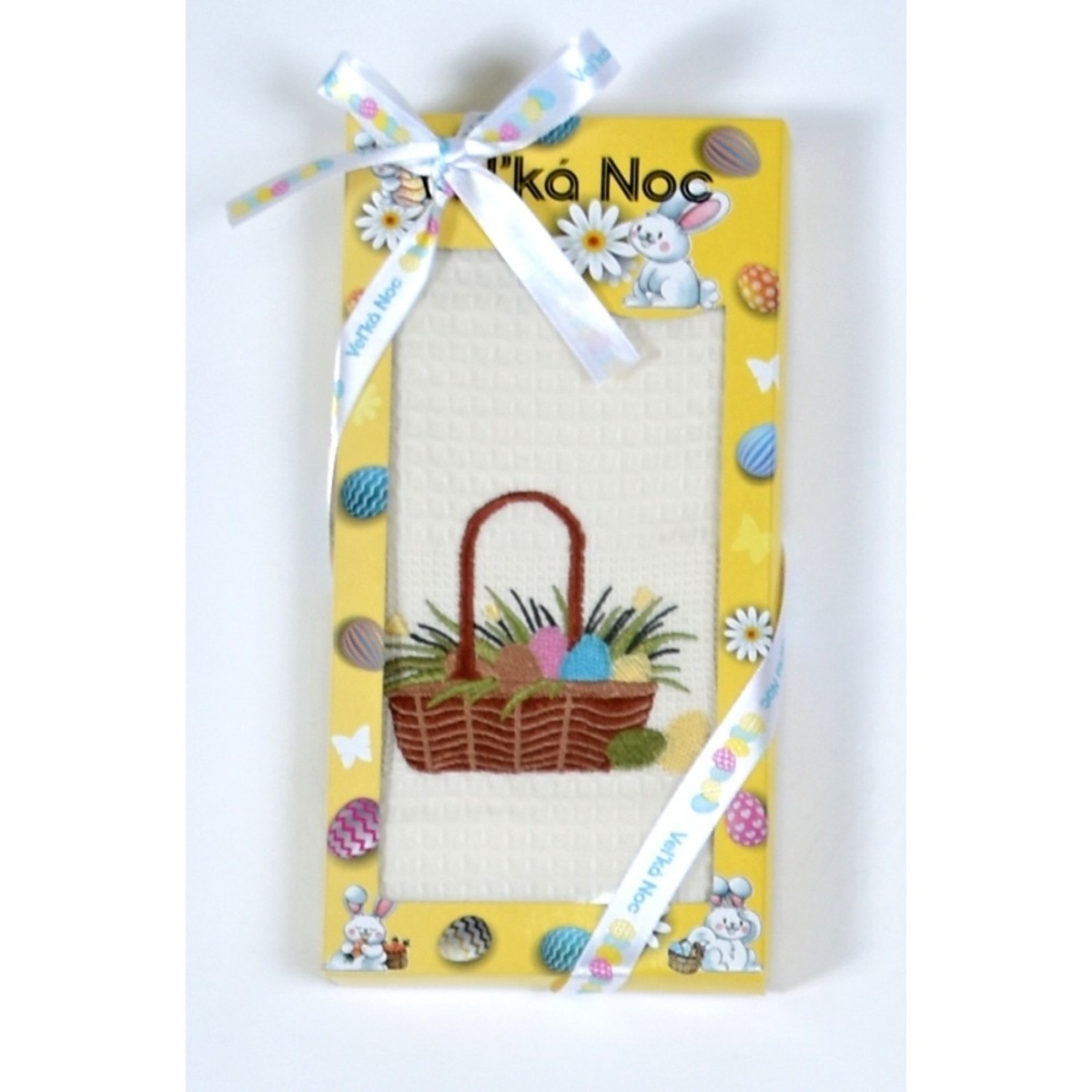 Bavlněná utěrka Darkové balení, Velikonoční košík plný kraslic, 50 x 70 cm