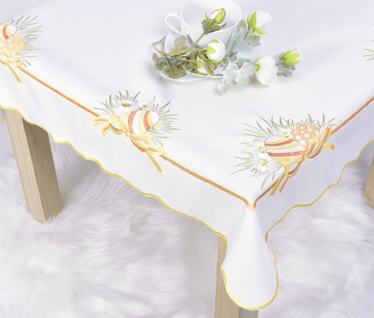 Tento nádherný velikonoční ubrus je ideální volbou pro každého, kdo si přeje přidat trochu jara a velikonoční atmosféry do svého domova. Tento vyšívaný ubrus s dezénem zajíčků zkrášlí každý stůl a vytvoří příjemnou a sváteční atmosféru.