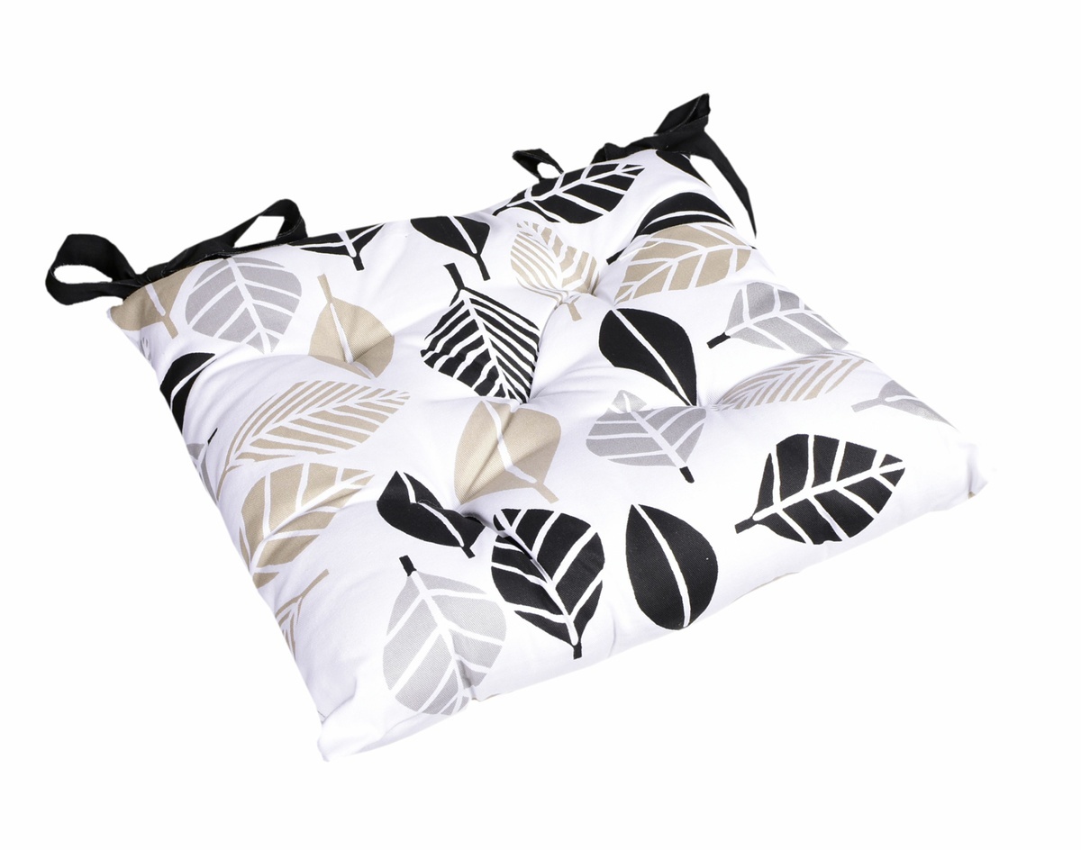 POPIS PRODUKTUDekorační sedák v dezénu listů s vázacími šňůrkami pro uchyceni k židli je skvělým doplňkem v kuchyni nebo jídelně.Sedák je vyroben z pevné 100 % bavlny a nadýchaného polyesterového vlákna uvnitř, který zajistí pohodlné sezení.Prošívání sedáku v pěti místech působí nádherným dojmem...