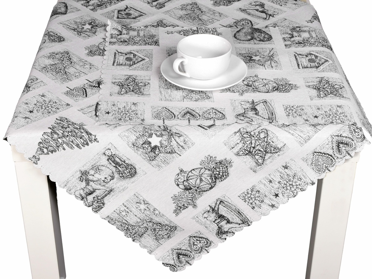 Ubrus gobelinový vánoční, Vánoční ozdoby, šedý 40 x 160 cm