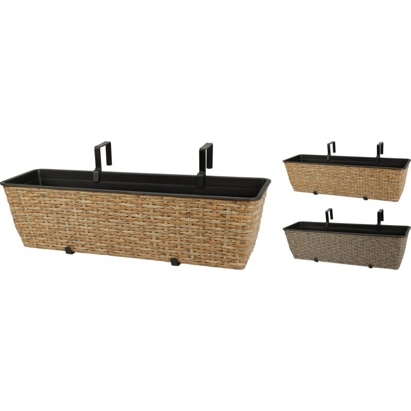 obdélníkový květináč s ocelovými závěsy, ploché proutí, 59x18x16cm, 2 různé barvy: přírodní a šedá, vložka s otvorem przeczytaj całość
