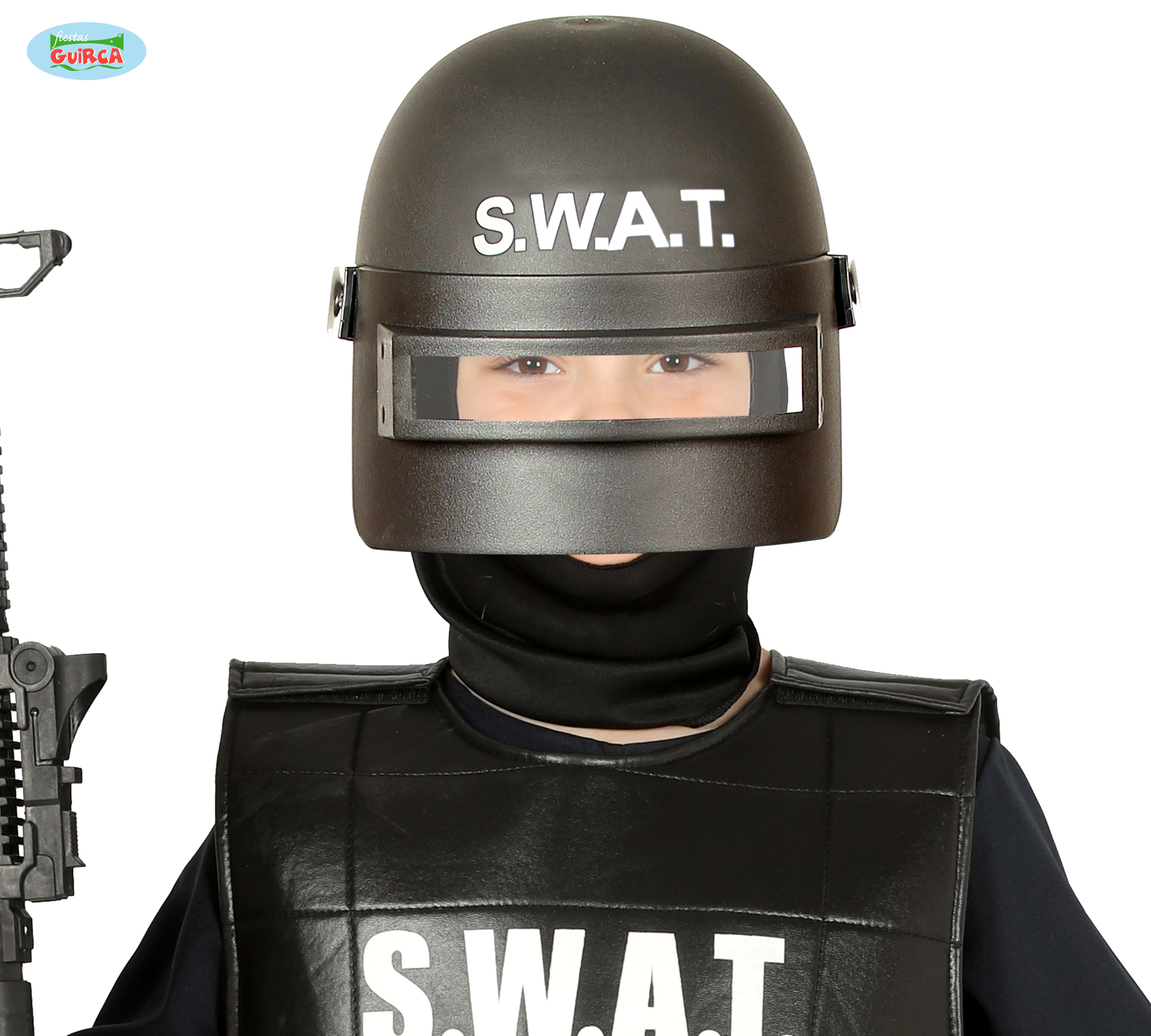 Hełm SWAT jest czarny, z logo SWAT na przedniej części. Ten element kostiumu można łączyć z innymi elementami ubioru policyjnego lub wojskowego, takimi jak broń, wyposażenie czy kamizelki taktyczne.