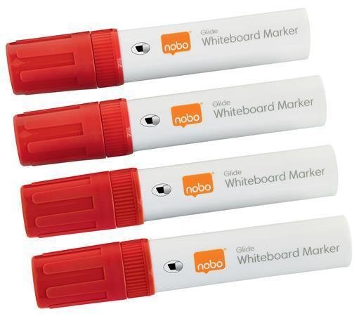 Popisovač na tabule a flip chart "Glide", červená, 10 mm, zkosený hrot, 4 ks, NOBO 1915390