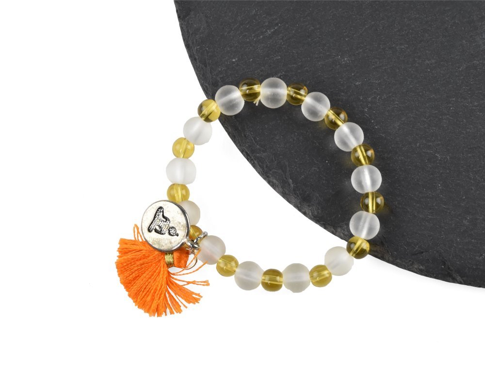 Náramek oranžový, třásně, Buddha