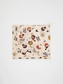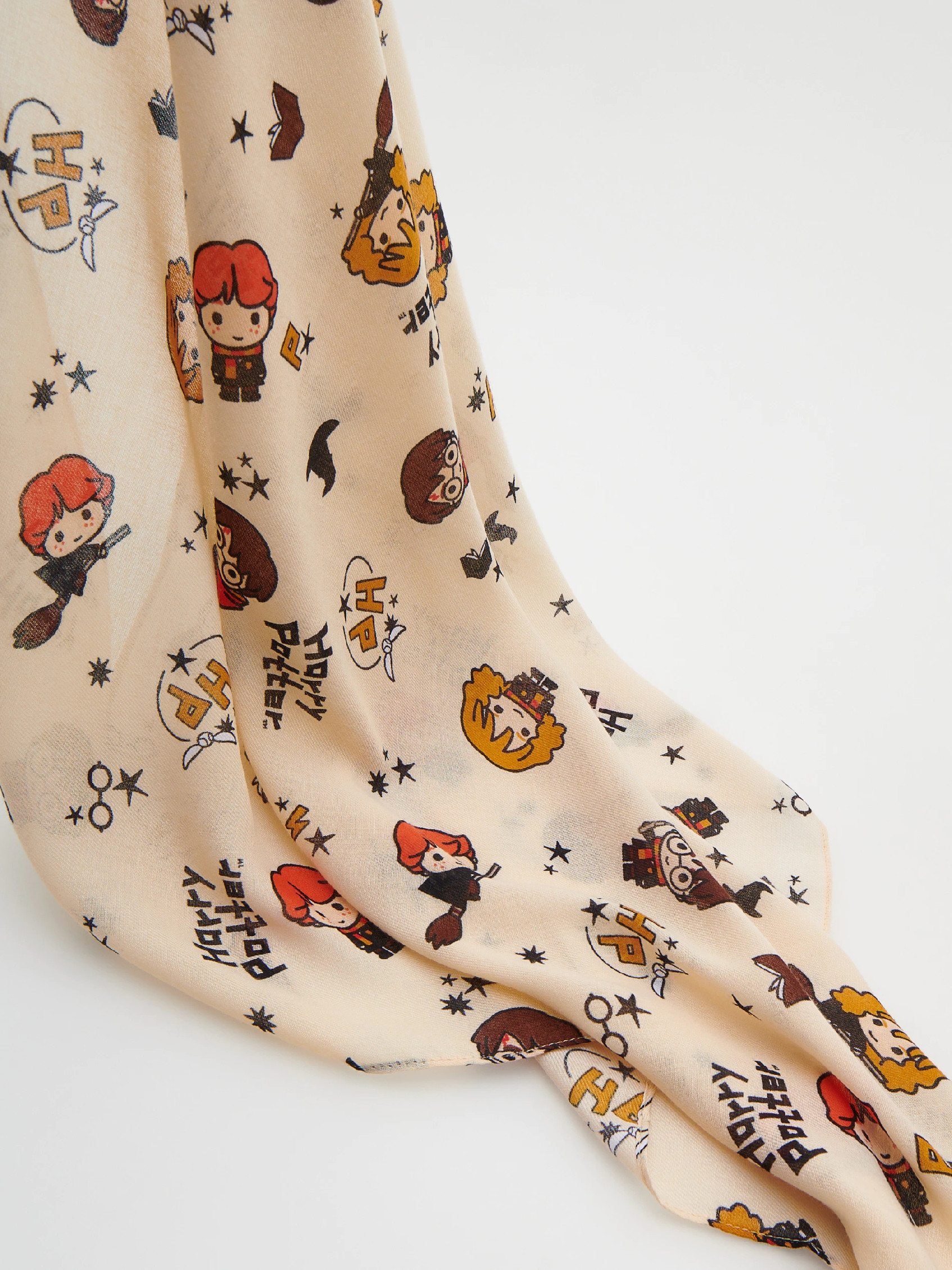 Szal z ozdobnymi frędzlami i postaciami. Kremowy kolor, bardzo przyjemny w dotyku.