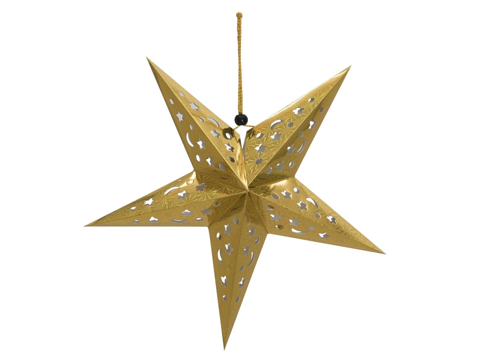 Dekorační skládací papírová hvězda. Průměr 75 cm, vhodná např. pro výrobu vánočního osvětlení (žárovky a příslušenství nejsou součástí dodávky). Možnost zavěšení. Hvězda je vyrobena z odolného kartonu a má vyražené motivy hvězd a měsíce.Přepravní hmotnost: 0,05 kg przeczytaj całość
