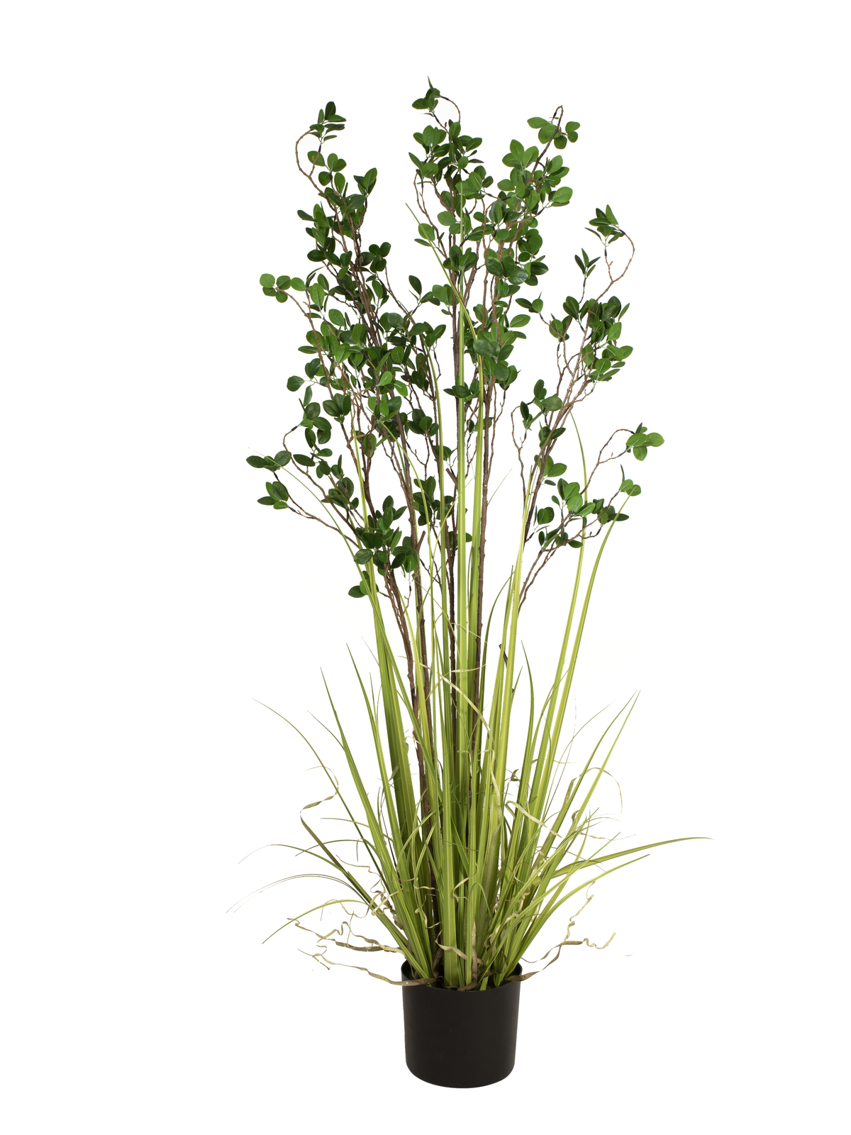 Umělý zelený keř s trávou vytvoří příjemnou atmosféru v obývacím pokoji i neútulné kanceláři. Větve zeleného vřetenového keře vyrůstají ze světle zeleného trsu trávy, která má délkou odstupňované listy. Různé odstíny zelené mezi trávou a listy keře dodávají rostlině jednoduchou eleganci a...