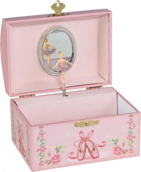 Po otwarciu szkatułki zaczyna grać delikatna melodia z opery Jezioro łabędzie, a mała baletnica zatańczy przed swoim lustrem