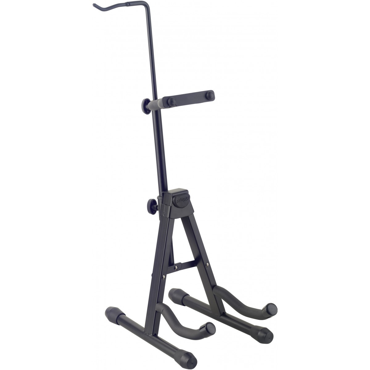 Składany stojak na skrzypce z haczykiem do zawieszenia smyczka. Regulowana wysokość 21 - 55 cm. Kolor czarny.