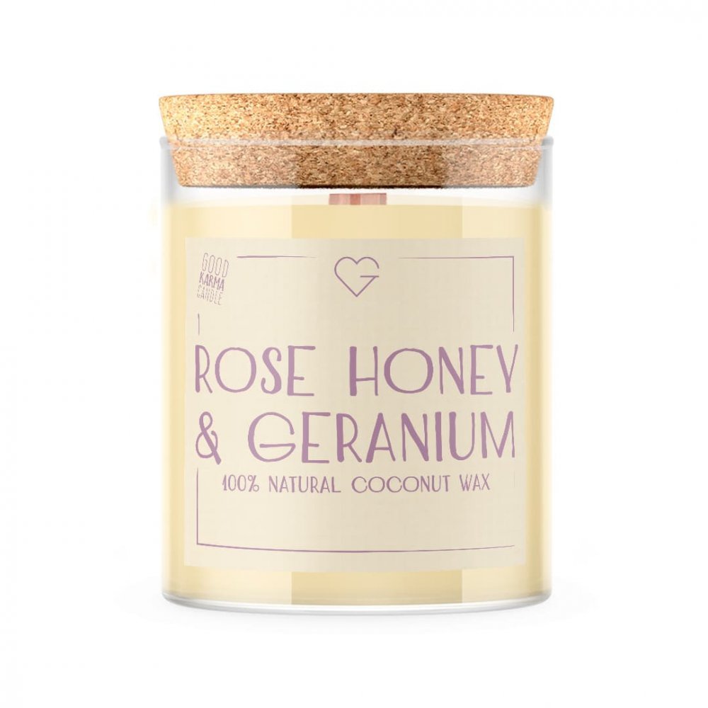Svíčka s dřevěným praskajícím knotem - Rose Honey & Geranium 160 g