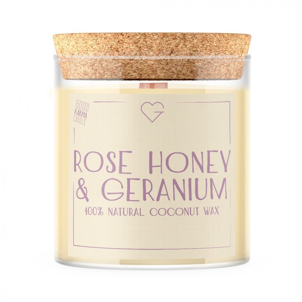 Svíčka s dřevěným praskajícím knotem - Rose Honey & Geranium 280 g