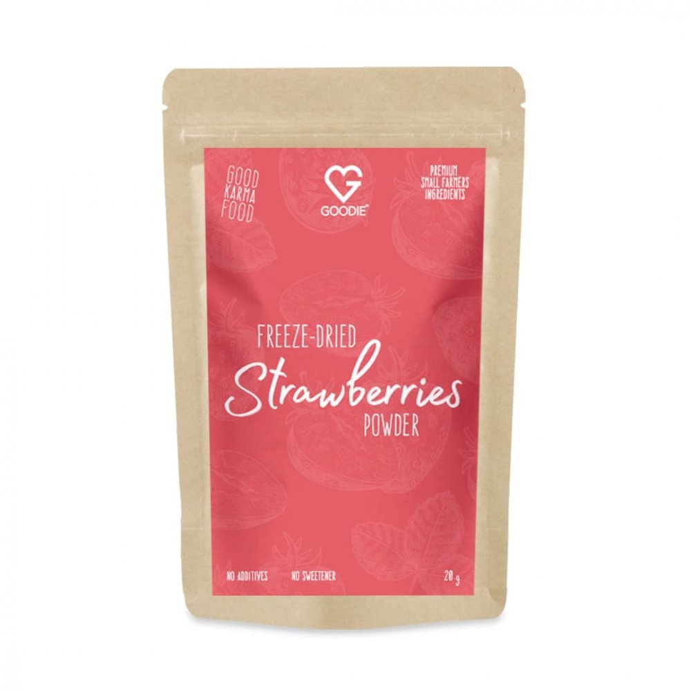 Jemný prášek z lyofilizovaných jahod nabízí všestranné využití při přípravě a zdobení pokrmů. Díky šetrnému sušení mrazem si jahody uchovávají většinu původních vlastností jako jsou vůně, chuť, barva a živiny, což se promítá i do prášku, který funguje jako čistě přírodní ochucovadlo i barvivo...