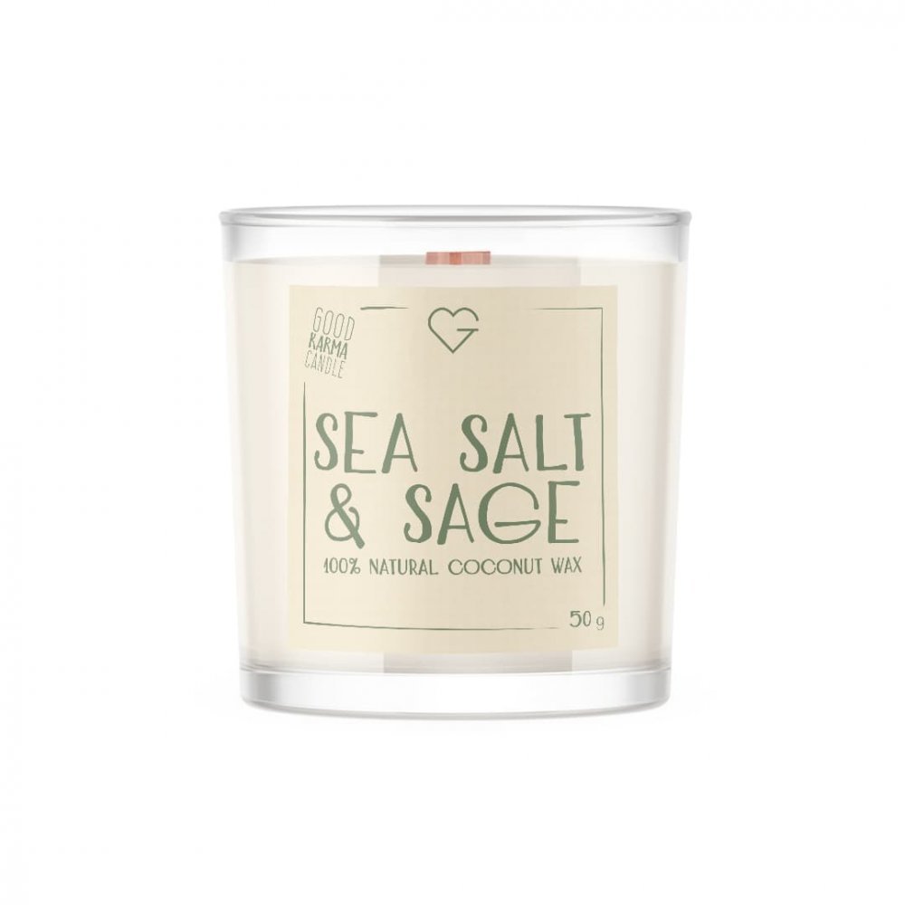 Svíčka s dřevěným praskajícím knotem – Sea Salt & Sage 50 g