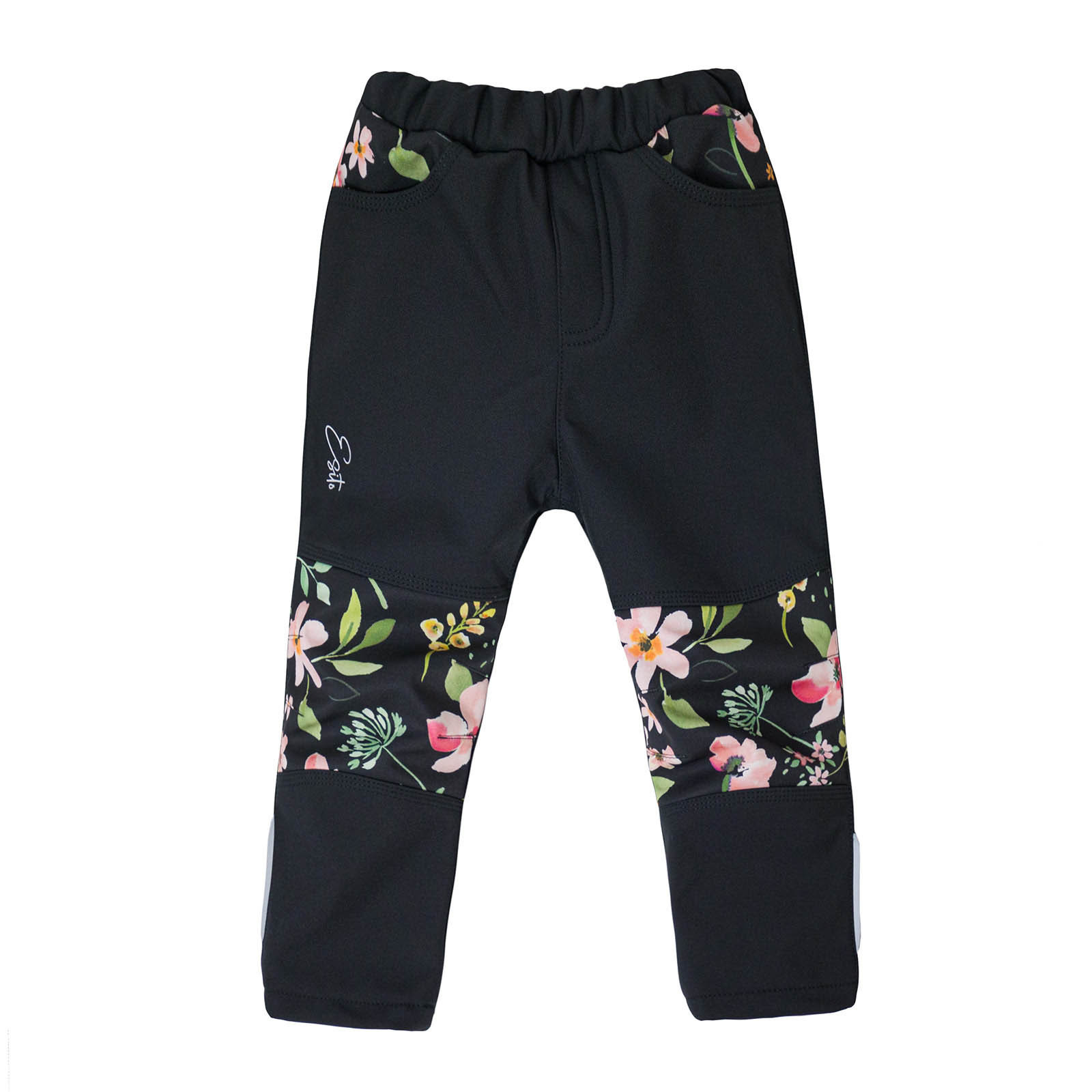Dětské softshellové kalhoty DUO Spring flowers; Barva: černá; Velikost: 110