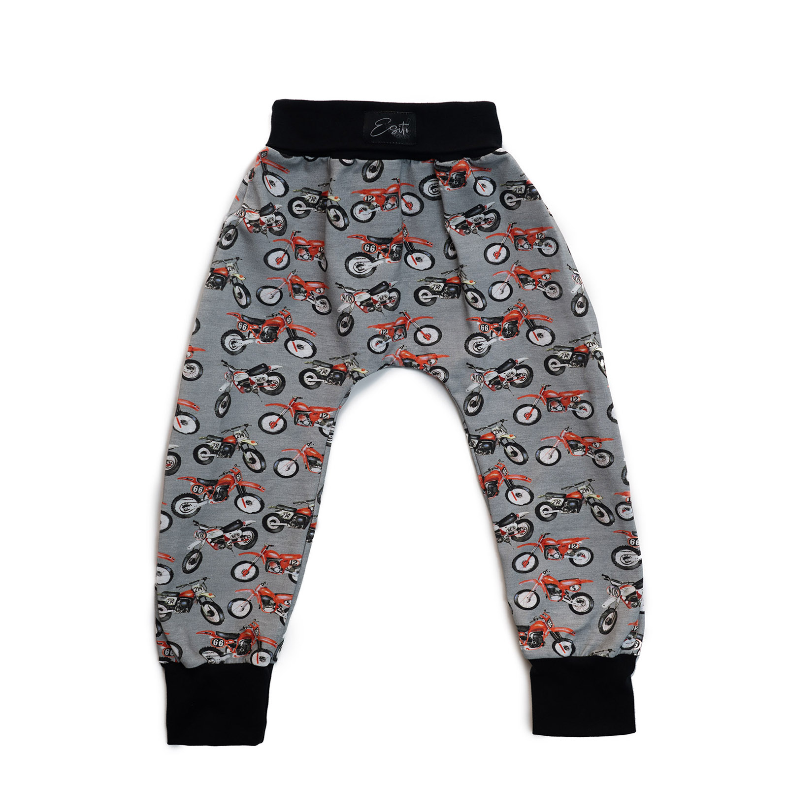 Rostoucí dětské tepláky Motorky; Barva: černá; Velikost: 86