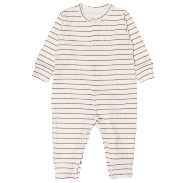 Kojenecký overálek, pyžámko bez šlapek, bavlna Proužek, béžový, vel. 62; 62 (2-3m)