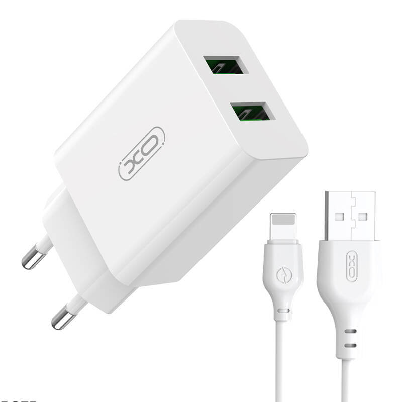 Wall charger XO L119 2x USB-A, Lightning cable, 18W (white)