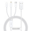 Quick Charge USB to M+L+C Baseus Superior Data 3.5A 1m (White)