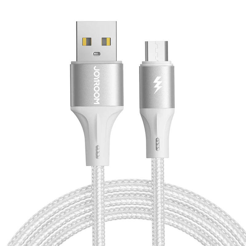 BrandJoyroomNameLight-Speed Series Fast Charging Data CableModelSA25-AM3ColorWhiteTypeUSB-A to micro USBCurrent3 A max.Transmission speedUp to 480 MbpsMaterialAluminum alloy nylon braidCable length2 m