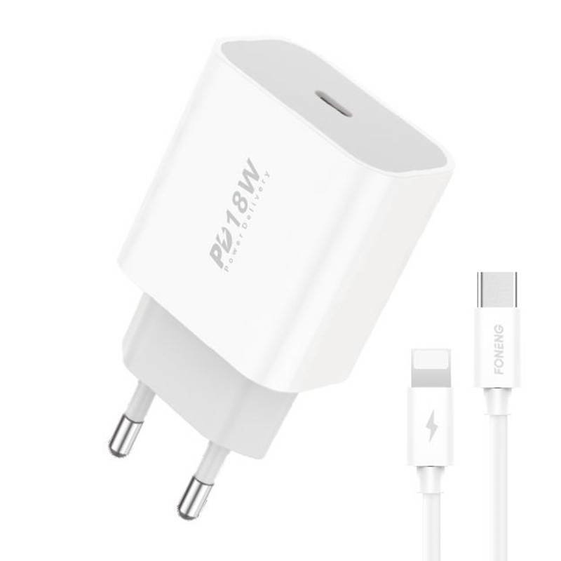 Síťová nabíječka Foneng EU23 podporuje protokol rychlého nabíjení PD 18W, který vám umožní obnovit energii vašeho zařízení během okamžiku. Kromě toho se o stabilní a bezpečné nabíjení stará inteligentní čip PCBA a použití PC V0. Výrobek automaticky rozpozná připojené zařízení a přizpůsobí mu parametry nabíjení. Kromě toho je součástí balení kabel USB-C na Lightning.