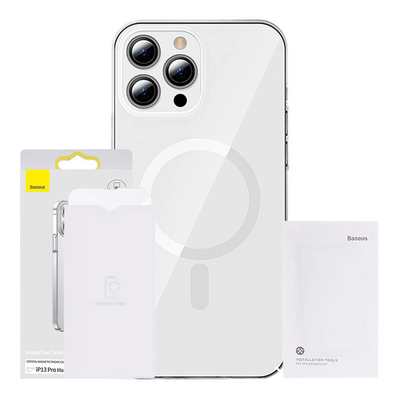 Baseus Crystal Magnetic Case pro iPhone 13 Pro Max (průhledný) + tvrzené sklo