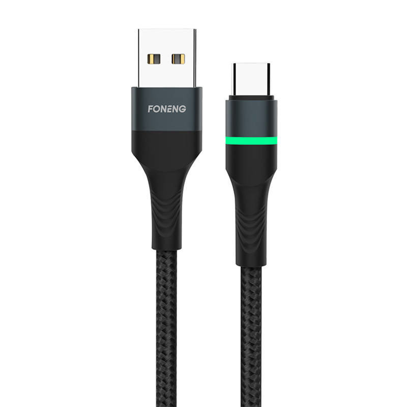 Kabel Foneng X79 USB na USB-C, LED, opletený, 66W, 1m (černý)