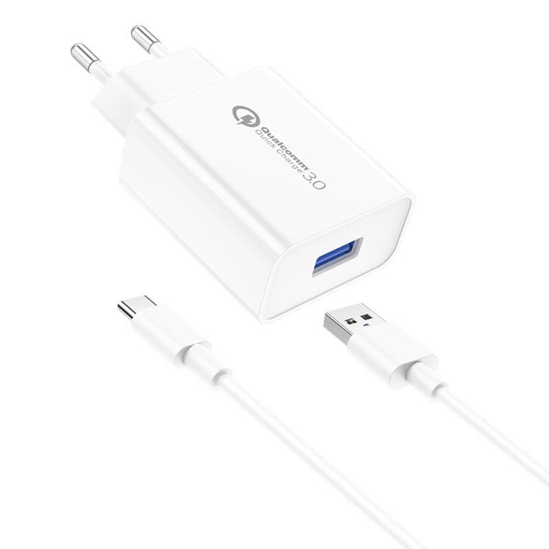 Foneng EU13 síťová nabíječka + kabel USB-C, 3A (bílá)