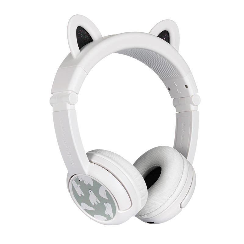 Bezdrátová sluchátka pro děti Buddyphones Play Ears Plus panda (bílá)