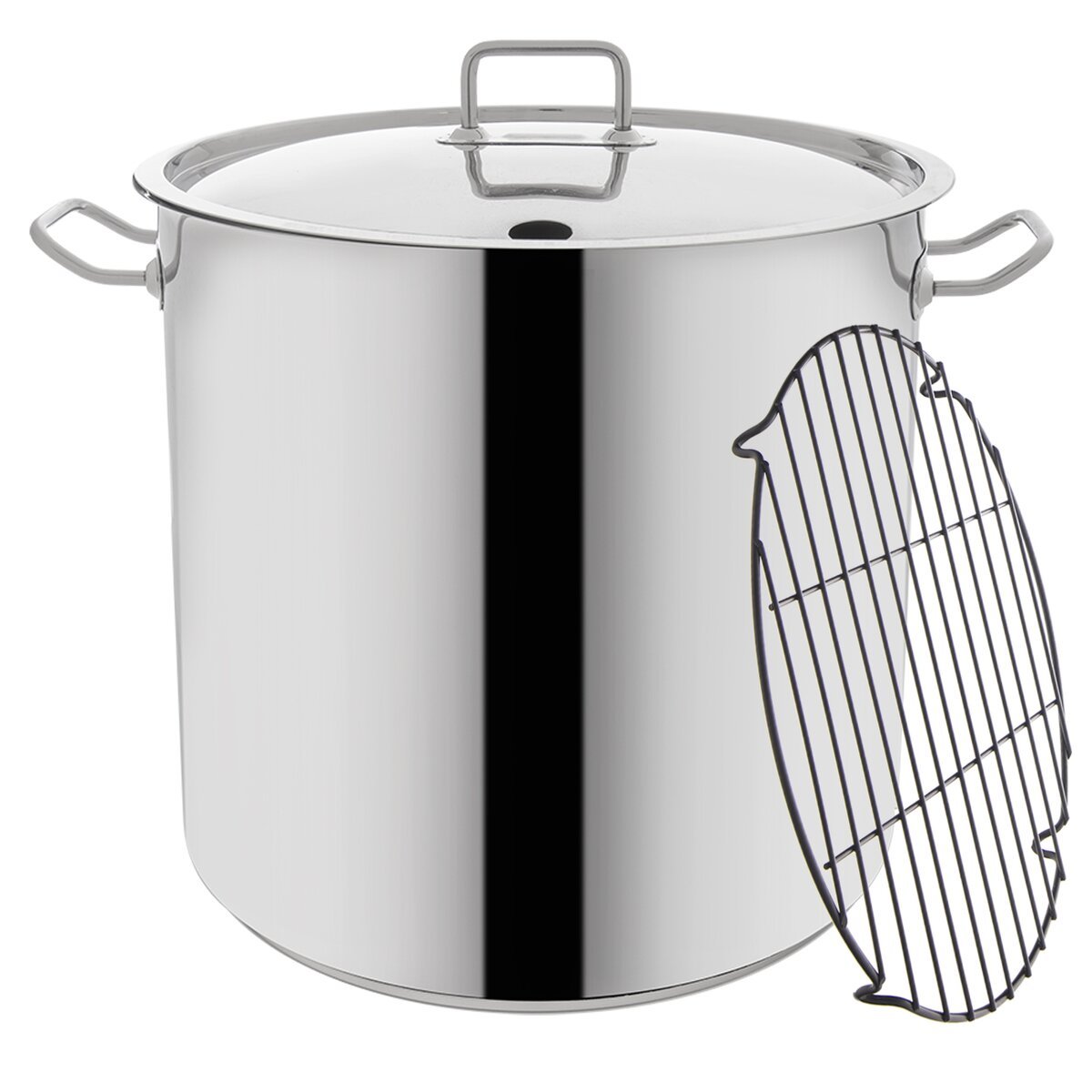 Hrnec s nerezovou poklicí s otvorem pro teploměr využijete jak na klasické vaření velkých porcí, tak na zavařování. Součástí výrobku je mřížka, která se při zavařování umístí na dno hrnce a chrání sklenice před prasknutím v průběhu procesu zaváření. Lze umístit 12 sklenic Omnia 0,7 l do spodní...