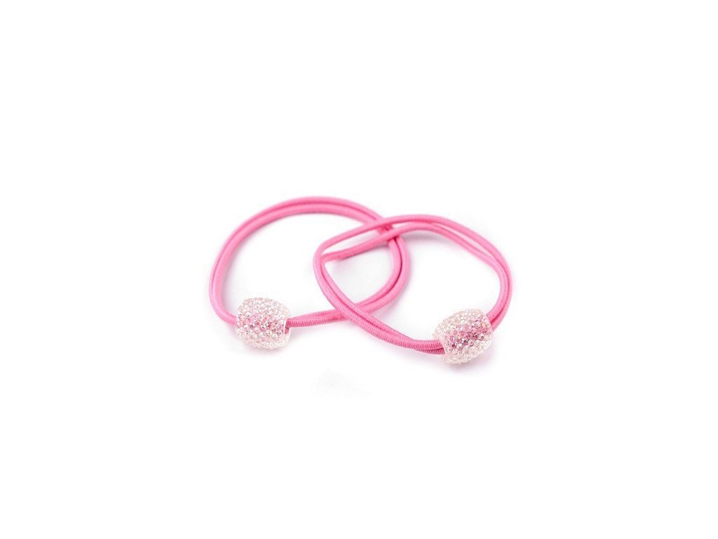 Gumička do vlasů s korálkem s broušenými kamínky růžová 2 ks