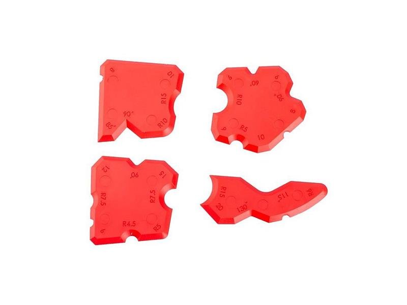 Sada stěrek na práci se silikony a tmely.Stěrky mají různé tvary přizpůsobené pro práci při tmelení, utěsňování - spár, dilatací, materiálových přechodů apod..Jednoduchým tahem při zvolení správného tvaru stěrky začistíte nanesený silikon nebo tmel (je nutné dodržet dobu... przeczytaj całość