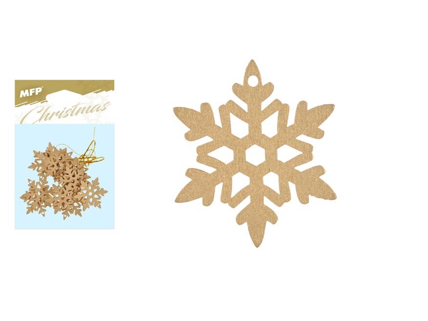 závěs Vločka dřevěný zlatý 12ks/4,5cm XC20181274 8885854