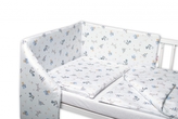 BABY NELLYS 3-dílná sada Mantinel s povlečením, Létající zvířátka, modré; 120x90