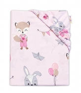 Baby Nellys Dětské bavlněné prostěradlo do postýlky, Liška a zajíc, růžové, 70x140 cm; 140x70