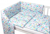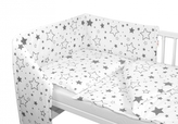 Baby Nellys 3-dílná sada - mantinel s povlečením - Šedé hvězdy a hvězdičky - bílý