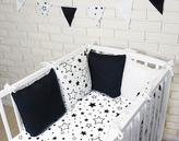 Polštářkový mantinel s povlečením - hvězdičky, černá/bílá,135x100 cm