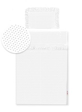 2-dílné bavlněné povlečení s volánky - bílé/tečky modré, 135x100 cm, Baby Nellys; bílá; 100 % bavlna
