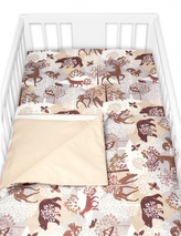 Povlečení do postýlky, 2D sada bavlna - Wild animals, Baby Nellys, hnědé, 135x100 cm; 135x100