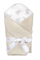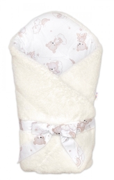 Novorozenecká zavinovačka velvet/bavlna, Malý medvídek - bílá/béžová