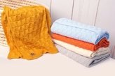 Luxusní bavlněná pletená deka, dečka CUBE, 80 x 100 cm - hořčicová
