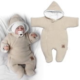 Zimní pletená kombinézka/overálek s kapucí Baby Nellys - béžová, capuccino, vel. 68; 68 (3-6m)