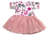 Šaty s tylovou sukní kr. rukáv, Macešky Baby Nellys, pudrové, vel. 128/134; 128-134 (7-9r)