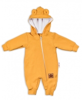 Baby Nellys Teplákový overal s kapucí Teddy - hořčicový, vel. 74