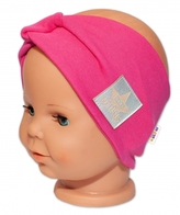 Baby Nellys Hand Made Jarní, bavlněná čelenka - dvouvrstvá, tm. růžová, 1-3 roky; 80-98 (9-36m)