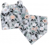 Baby Nellys Dvouvrstvá čepice s oušky + šátek Palouček, mátová; 62-74 (3-9m)