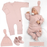 Rostoucí žebrovaný overálek, čepička a botičky, 3D, Nature - pudrově růžová, vel. 62/68; 62/68 (3-6m)