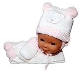 BABY NELLYS Sada - čepička, šál a rukavičky - Medvídek s bambulkami; 62-74 (3-9m)