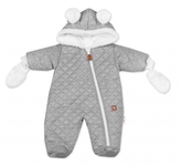 Zimní prošívaná kombinéza s chlupáčkovou podšívkou + rukavičky, Love, šedá, vel. 62; 62 (2-3m)